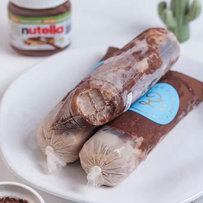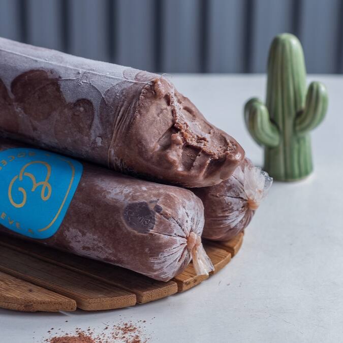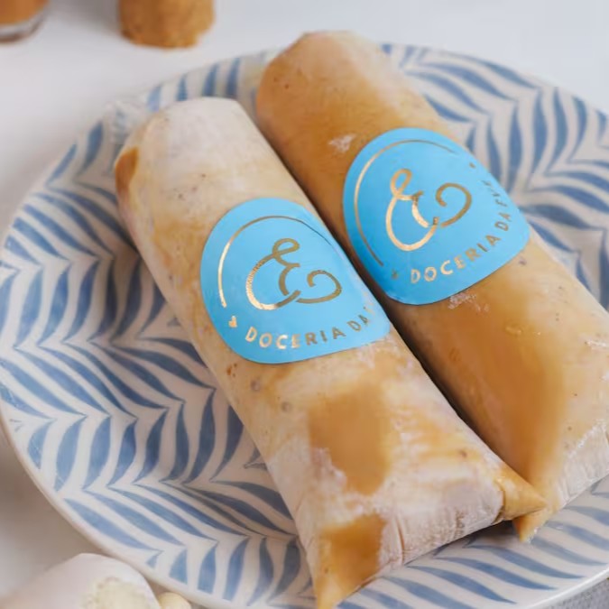 sacolé feito com base cremosa de paçoca, todos os ingredientes 0 lactose.