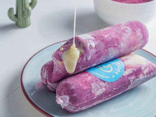 Sacolé de açaí com casquinha de chocolate branco