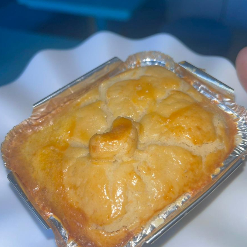 Creme de macaxeira, frango com tempero da casa, gratinado com queijo mussarela. Acompanha arroz de açafrão - 150g