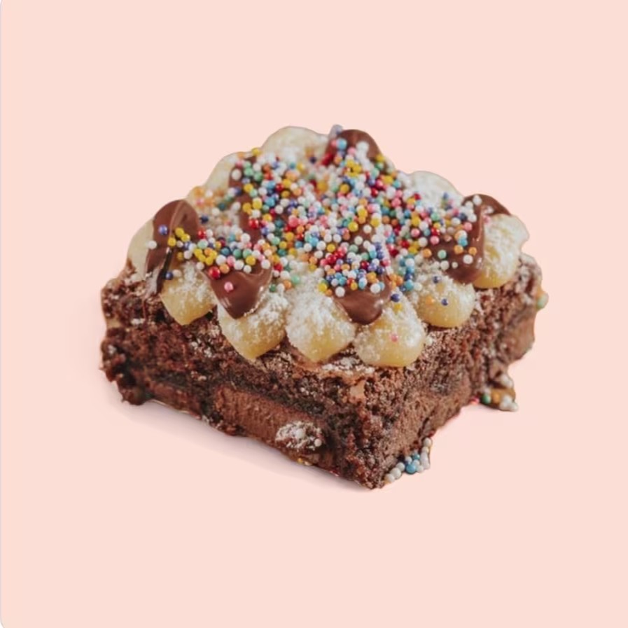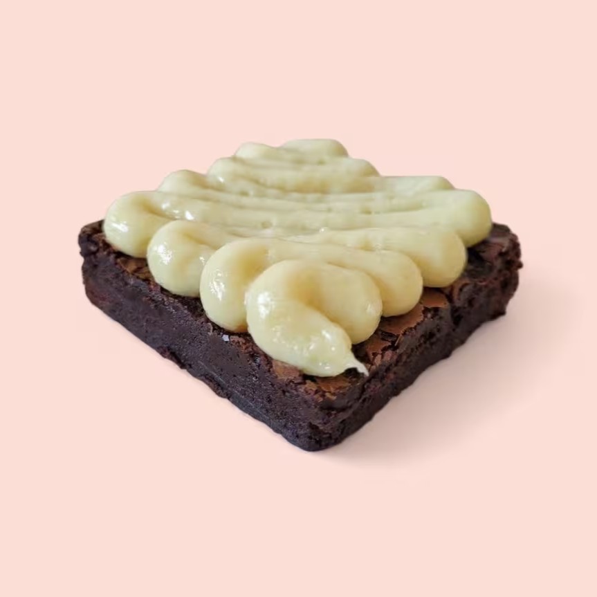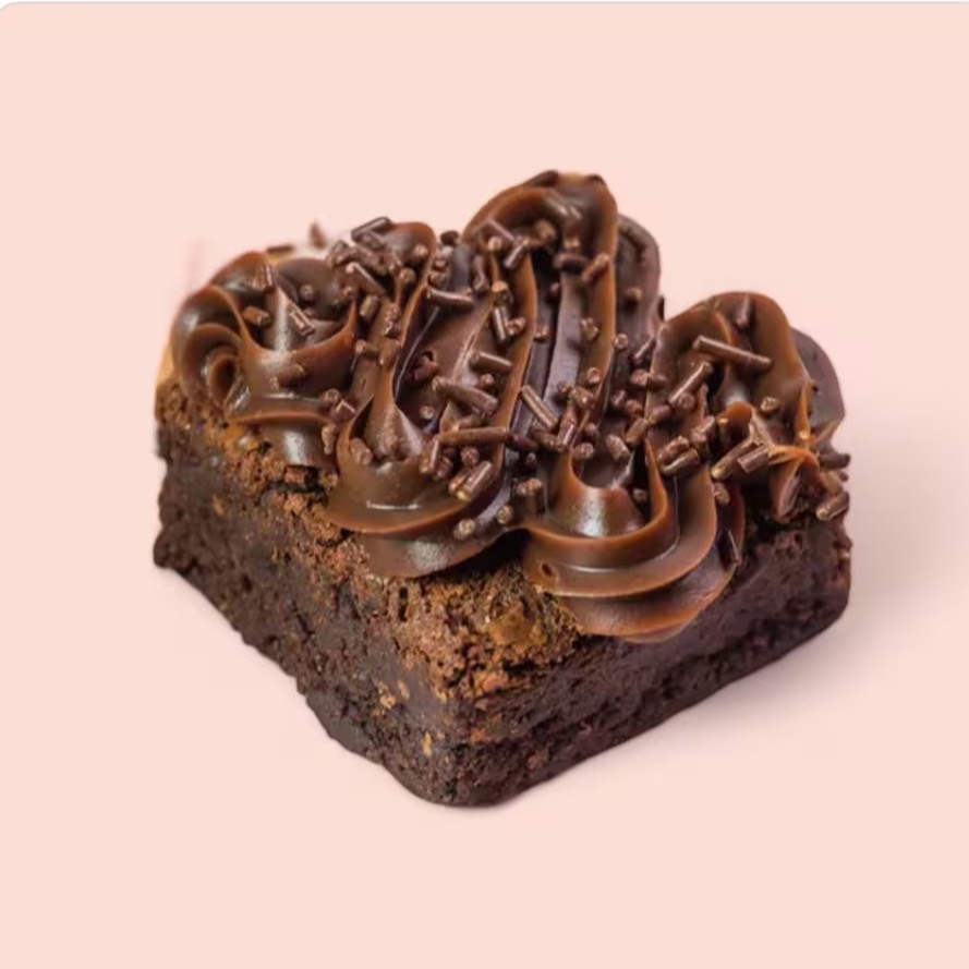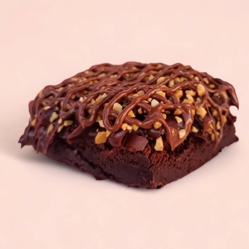 Brownie com cobertura de brigadeiro de leite e creme de avelã puro. Aprox: 170g)