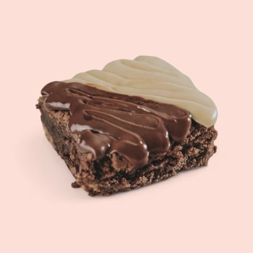 Brownie com cobertura de brigadeiro branco e brigadeiro de chocolate ao leite. (Aprox: 170g)
