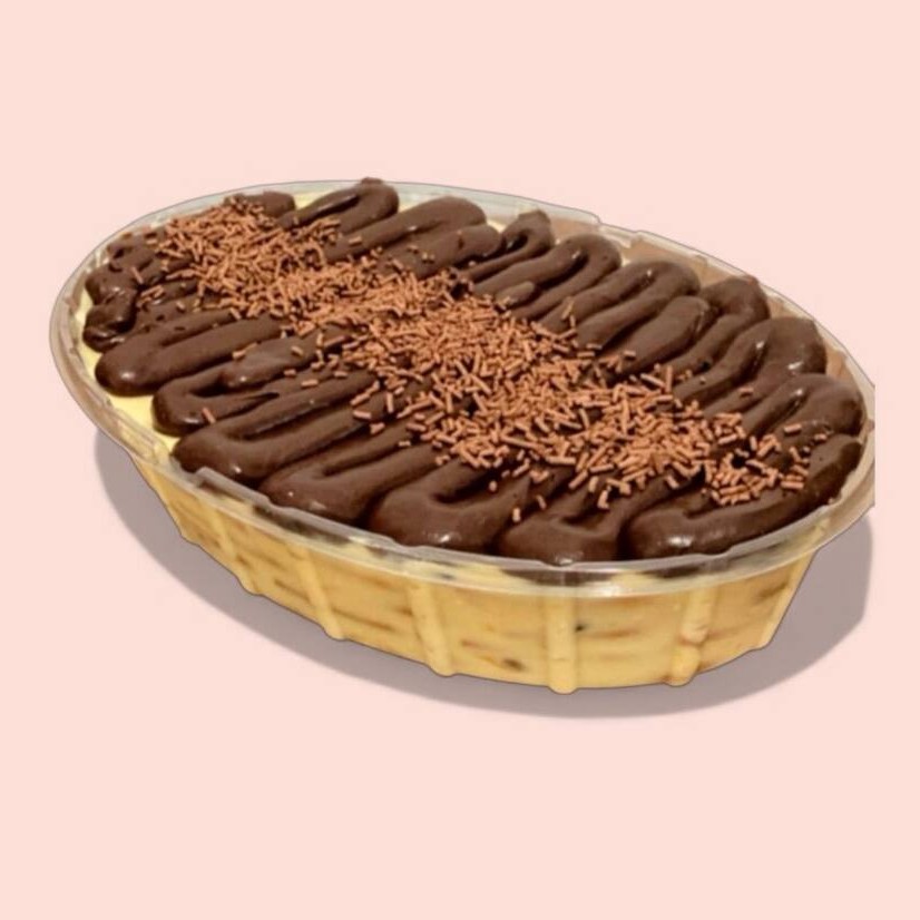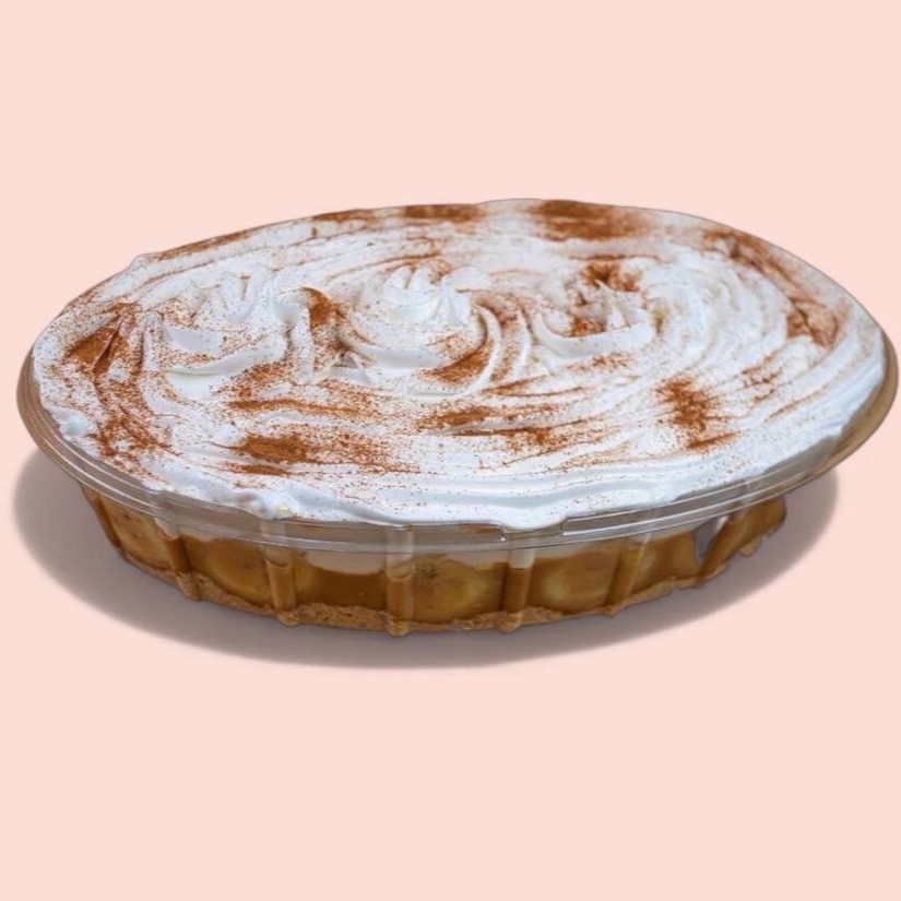 Travessa especial com farofinha de biscoito amanteigado, banana fresca, doce de leite cremoso e chantilly leve com toque de canela. (Aprox: 2 Kg)
