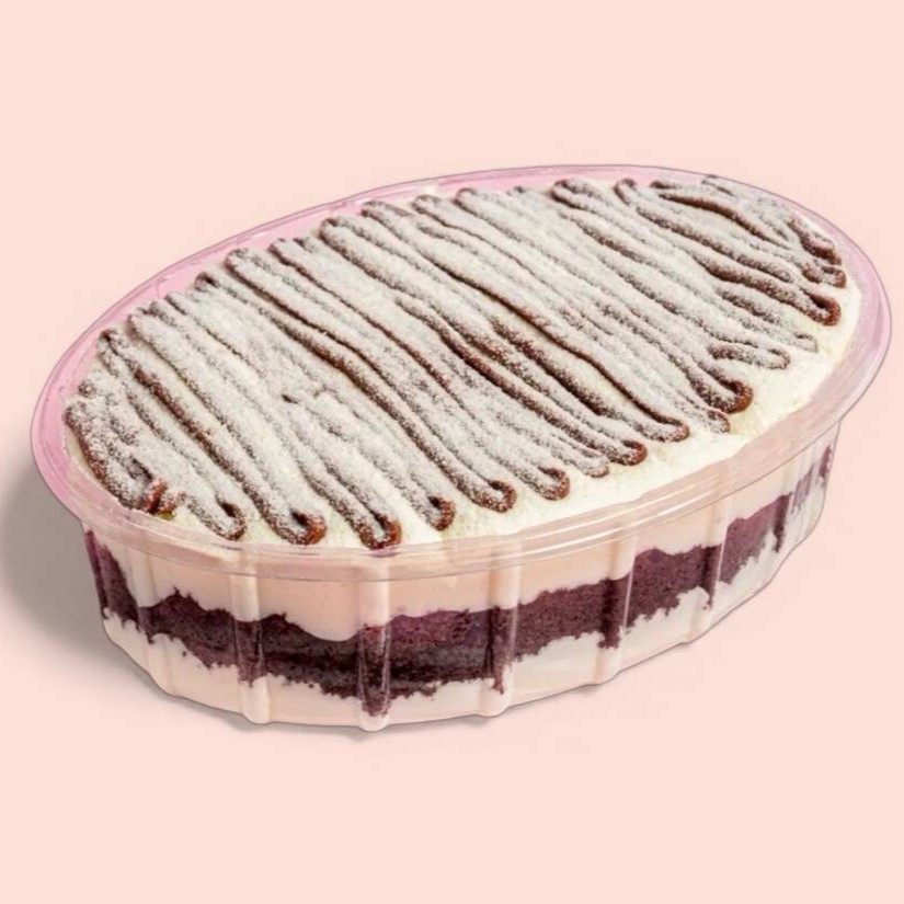 Massa de chocolate, creme de chocolate cremoso, brigadeiro de chocolate ao leite em camadas, coberto por chocolate brando e chocolate preto ralado e granulados. (Aprox: 250g)
