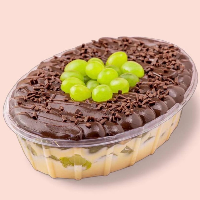 Camadas de brigadeiro branco, creme de Ninho, uva sem caroço e cobertura de brigadeiro com granulado e uvas. (Aprox: 2 Kg)
