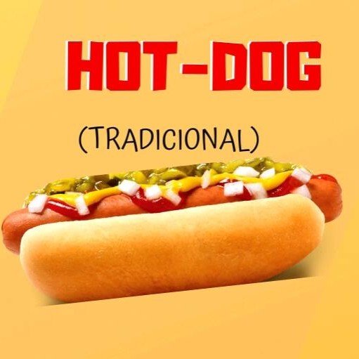 Pao de hot dog, salsicha com molho, tomate cebola, milho e ervilha, batata palha, queijo ralado. Ketchup e maionese.