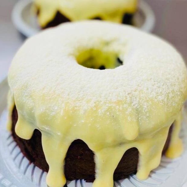 Bolo de chocolate 50% cacau com cobertura de chocolate moça, delicioso bolo que serve bem 4 pessoas. 600gr