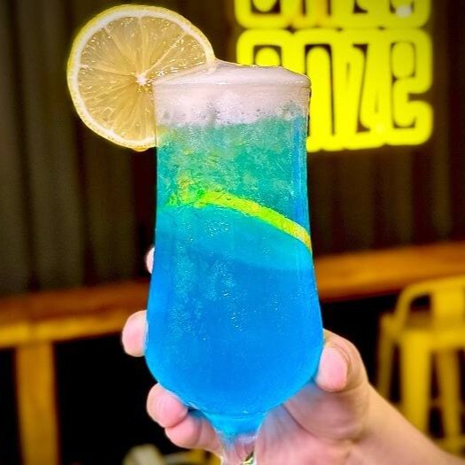 Refrescante Drink Blue, uma explosão de sabores com limão siciliano e uma deliciosa espuma que adiciona um toque especial.