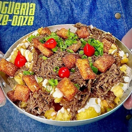 Experimente a perfeita combinação de batatas fritas crocantes, cream cheese maçaricado e suculenta charque desfiada. Uma explosão de sabores em cada mordida, impossível resistir!