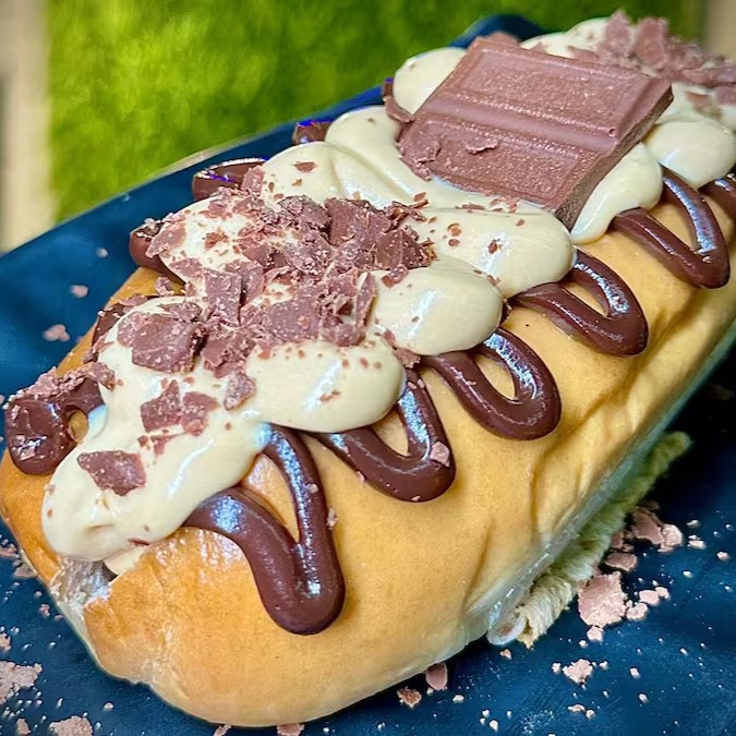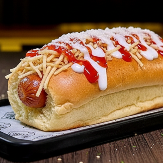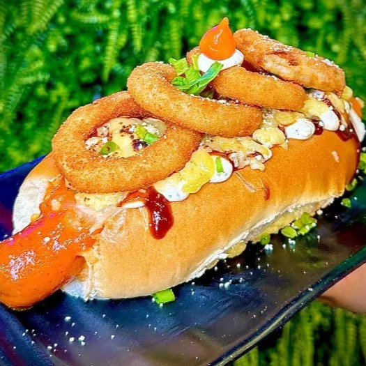 Hotdog gourmet com duas salsichas suculentas ao molho bolonhesa, acompanhadas de dueto de milho e ervilha, batata palha crocante, queijo ralado, maionese artesanal e ketchup. Sabor único em cada mordida!