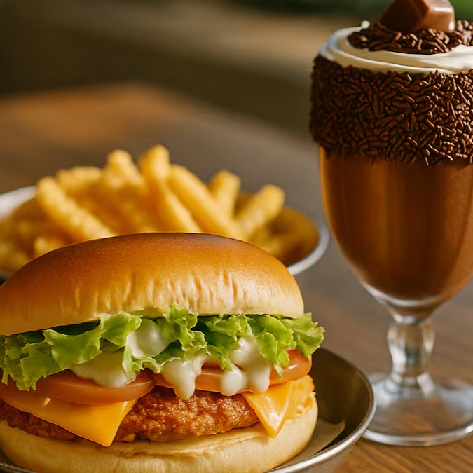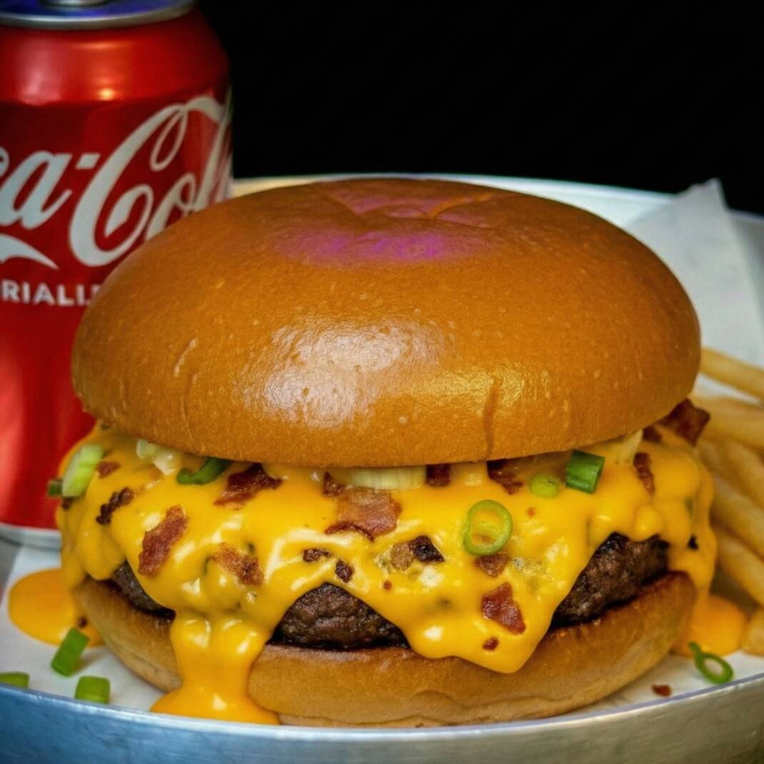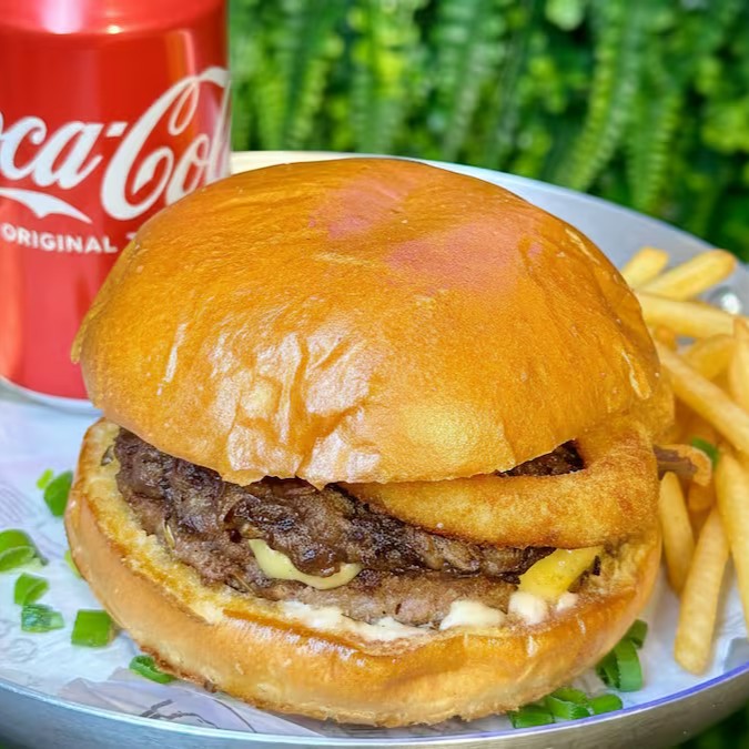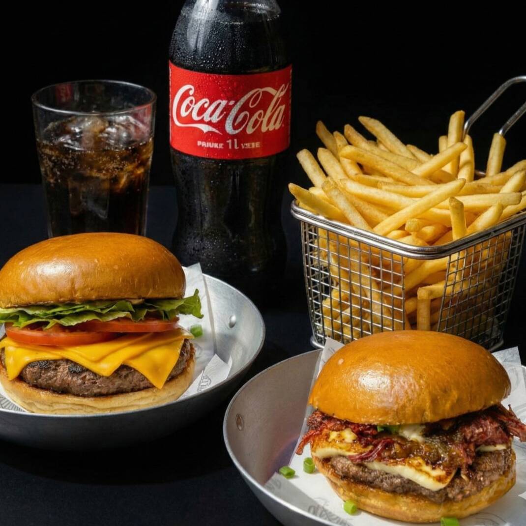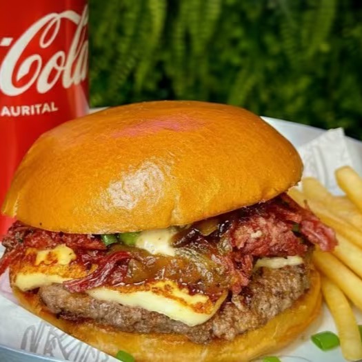 Um burger artesanal suculento, batata frita crocante e uma Coca-Cola Original geladinha pra fechar com chave de ouro.
