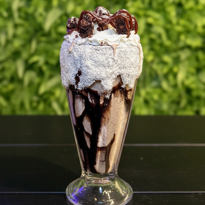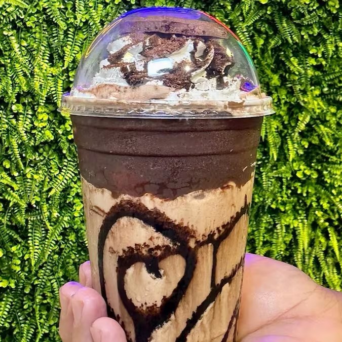 Delicioso Milkshake de Leite Ninho, repleto de pedaços irresistíveis de brownie, cobertura tentadora de chocolate, acompanhado de brigadeiro cremoso e finalizado com um toque especial de chantininho. Uma explosão de sabores em cada gole!