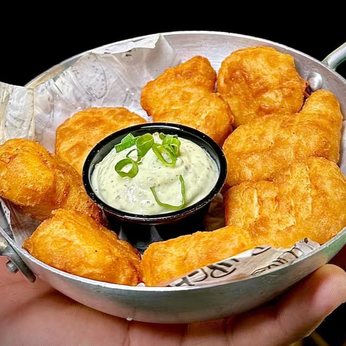 Porção irresistível de 8 nuggets de frango crocantes e suculentos, acompanhados de uma deliciosa maionese caseira.