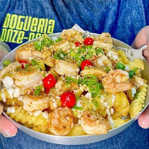 Porção de batata frita crocante, acompanhada de uma maionese artesanal de dar água na boca! Coberta com generosas porções de camarão, cebolinha fresquinha e um toque de alho frito.