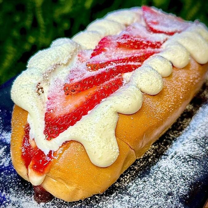 Hotdog Frango Caipira: suculento pão brioche recheado com duas salsichas, molho de tomate caseiro, creme de frango cremoso, milho verde, muçarela maçaricada, bacon e um toque de cebolinha. Um sabor inesquecível!