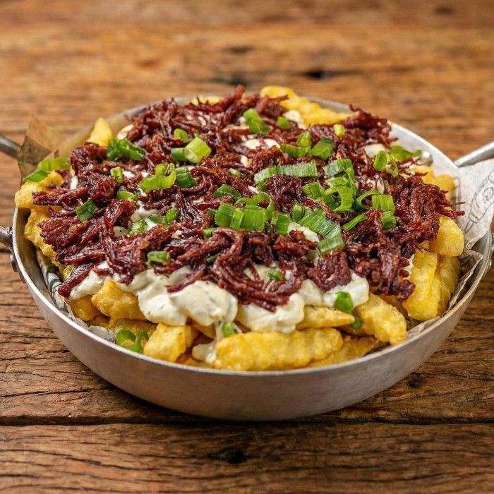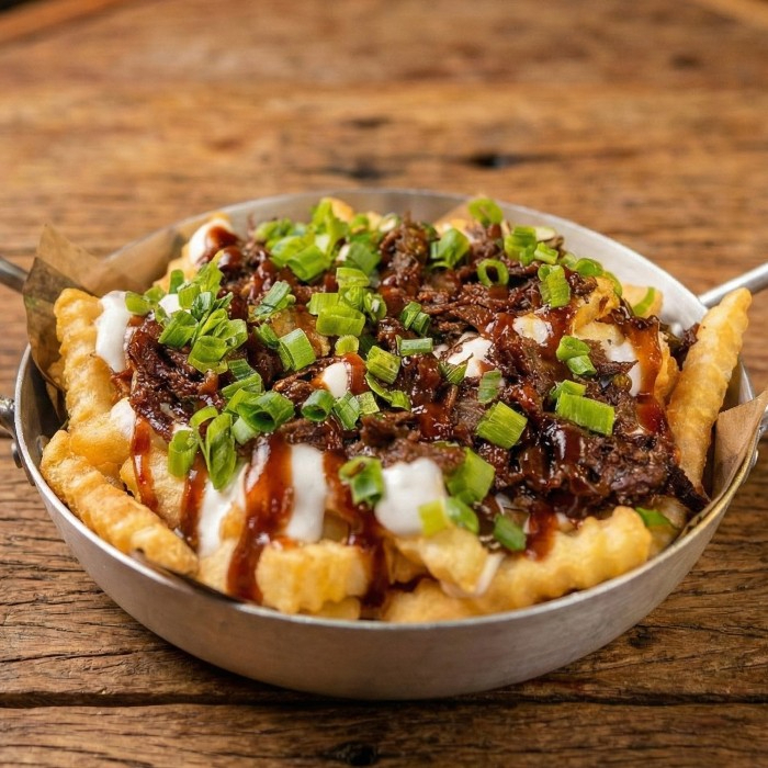Fritas Gourmet Com Costelinha Desfiada E Molho Barbecue