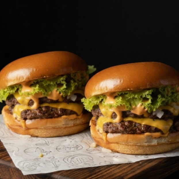 blend bovino com cheddar fatiado, cebola crua, maionese especial, molho tipo big "MEQUI" e alface fresca. Disponível na opção com duas carnes e o dobro de queijo para quem deseja mais sabor e satisfação.