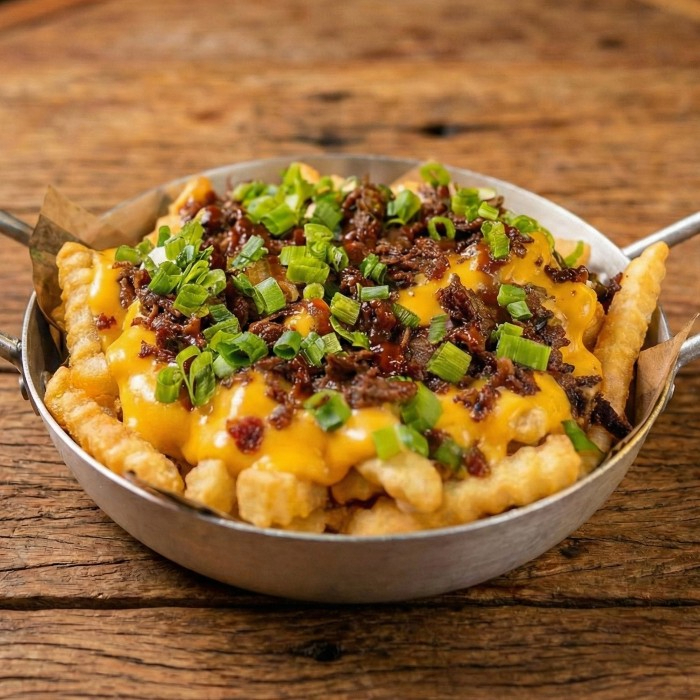 Fritas Gourmet Com Queijo Cheddar Derretido E Bacon Crocante