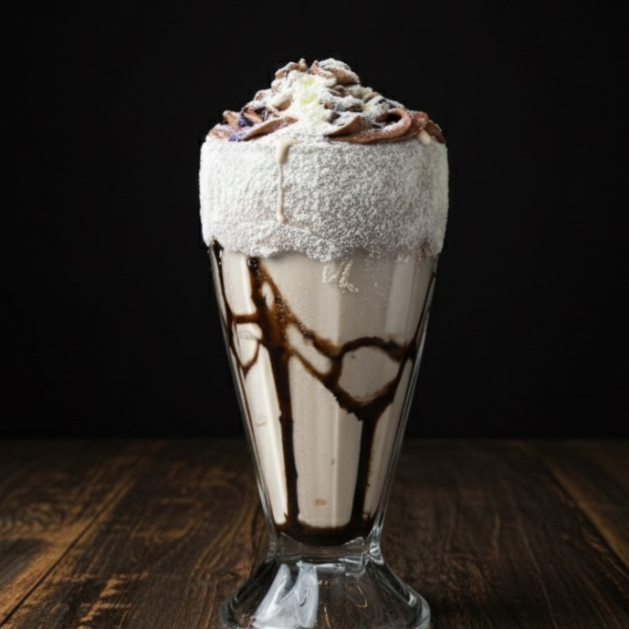 Delicie-se com nosso irresistível milk-shake de Ovomaltine, cremoso chantilly e uma tentadora cobertura de chocolate. Um verdadeiro deleite para os amantes de sabores únicos e deliciosos.