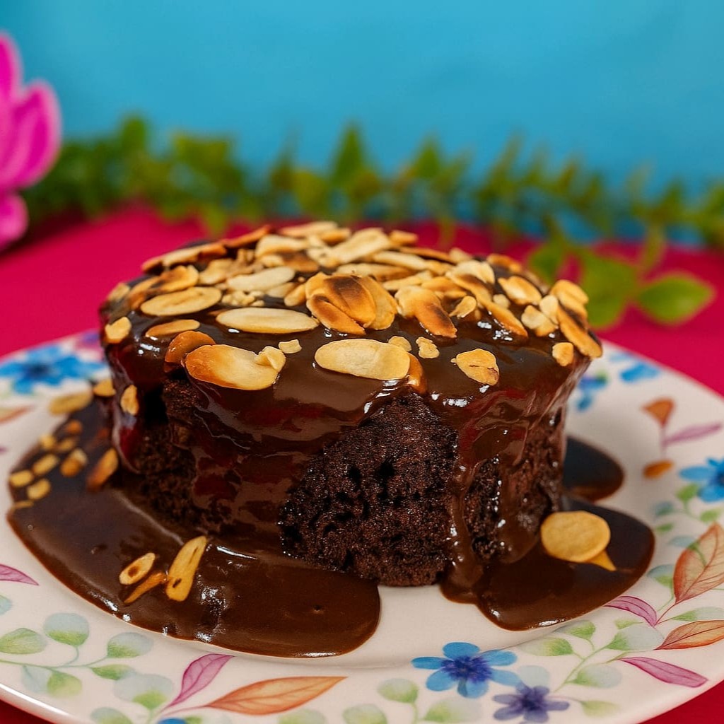 Mini Bolo Vulcão - Chocolate Com Brigadeiro De Café E Amêndoas Laminadas