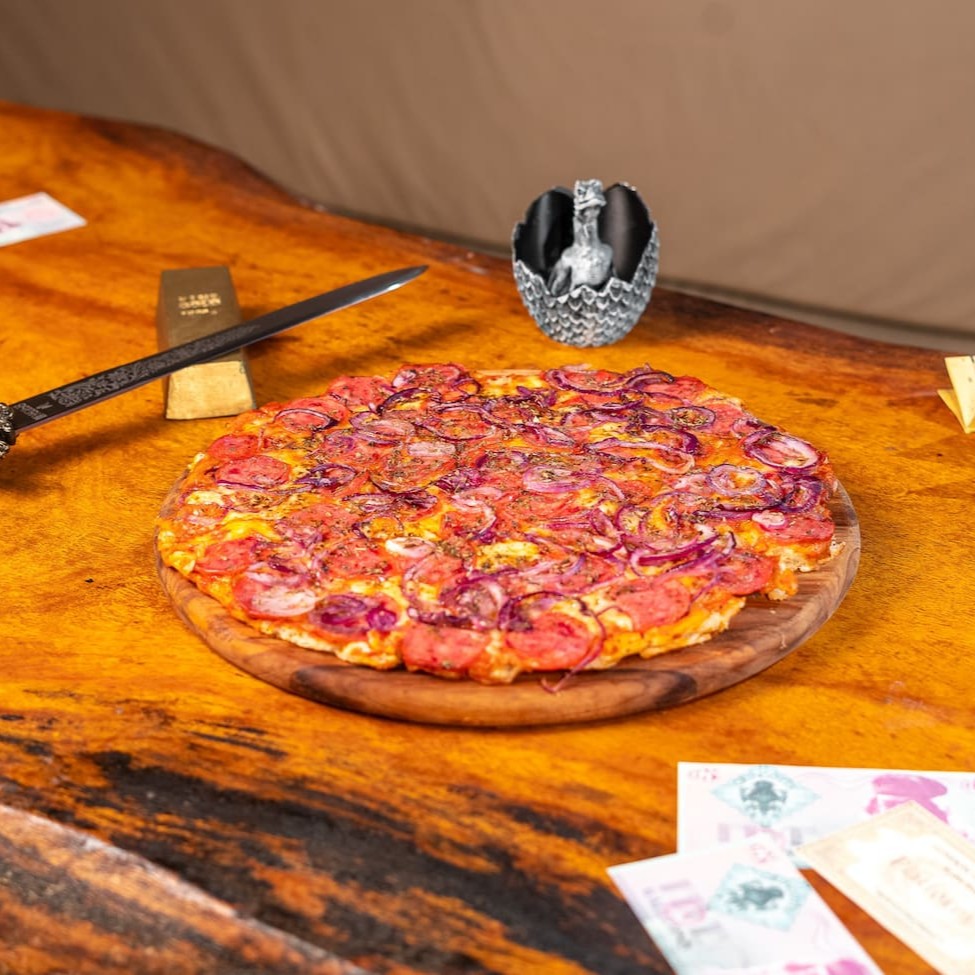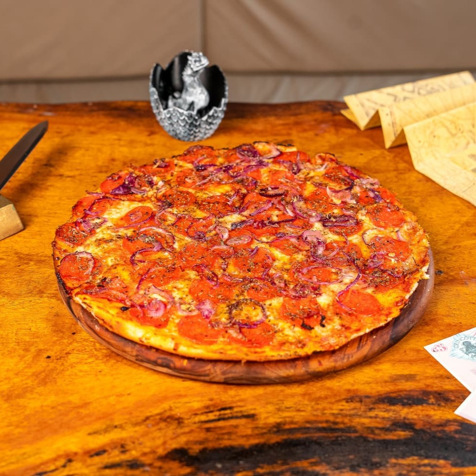 Massa artesanal fresca, molho de tomate caseiro, bastante queijo mussarela, uma porção generosa de pepperoni, finalizada com cebola roxa e um leve toque de orégano. Atenção: Não trocamos, nem retiramos ingredientes.