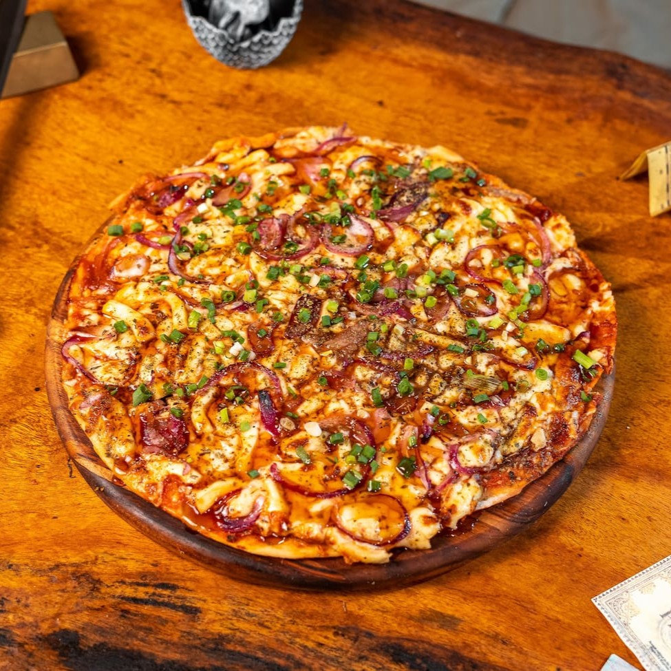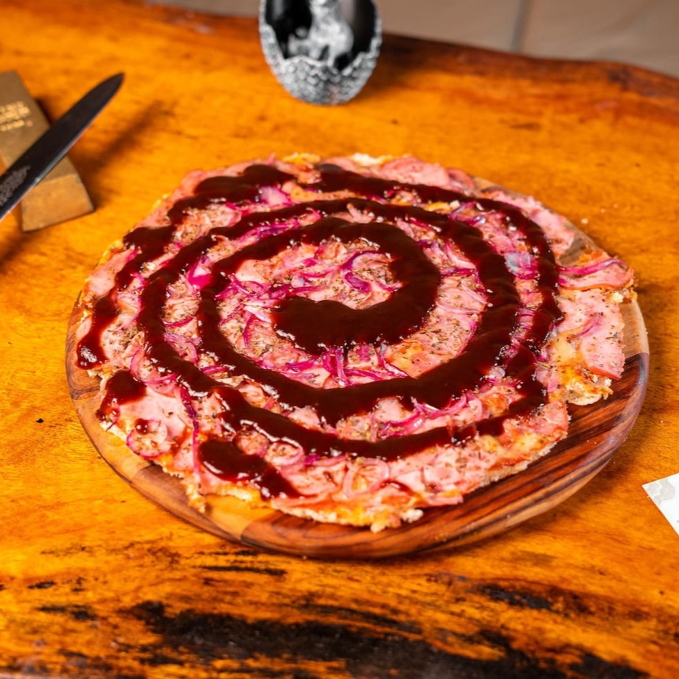 Massa artesanal fresca, molho de tomate caseiro, bastante queijo mussarela, uma porção generosa de lombo canadense defumado, finalizada com molho barbecue e cebola roxa. Atenção: Não trocamos, nem retiramos ingredientes.