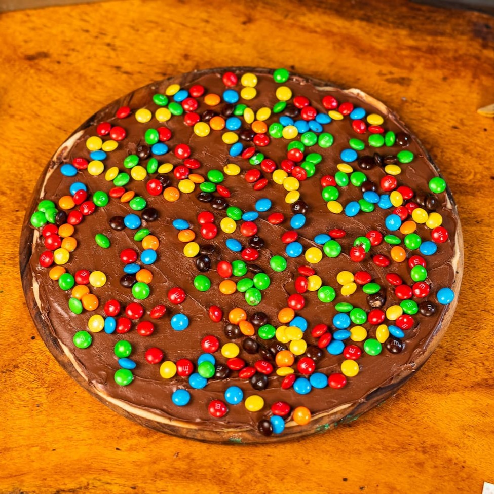 Massa artesanal fresca, base Nestlé no sabor chocolate preto, finalizado com M&M's Original. Atenção: Não trocamos, nem retiramos ingredientes.