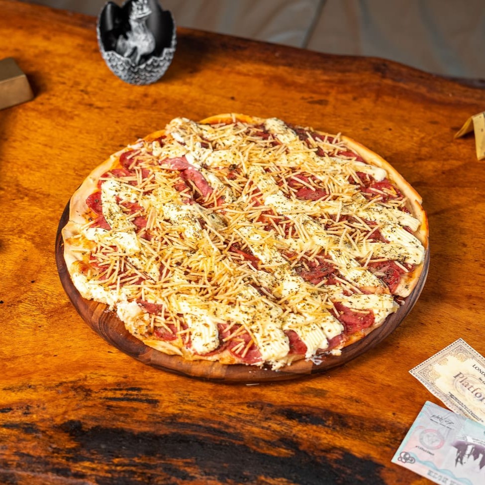 Massa artesanal fresca, molho de tomate caseiro, bastante queijo mussarela e porções generosas de Catupiry Original, cheddar Original e parmesão ralado, finalizado com um leve toque de orégano. Atenção: Não trocamos, nem retiramos ingredientes.