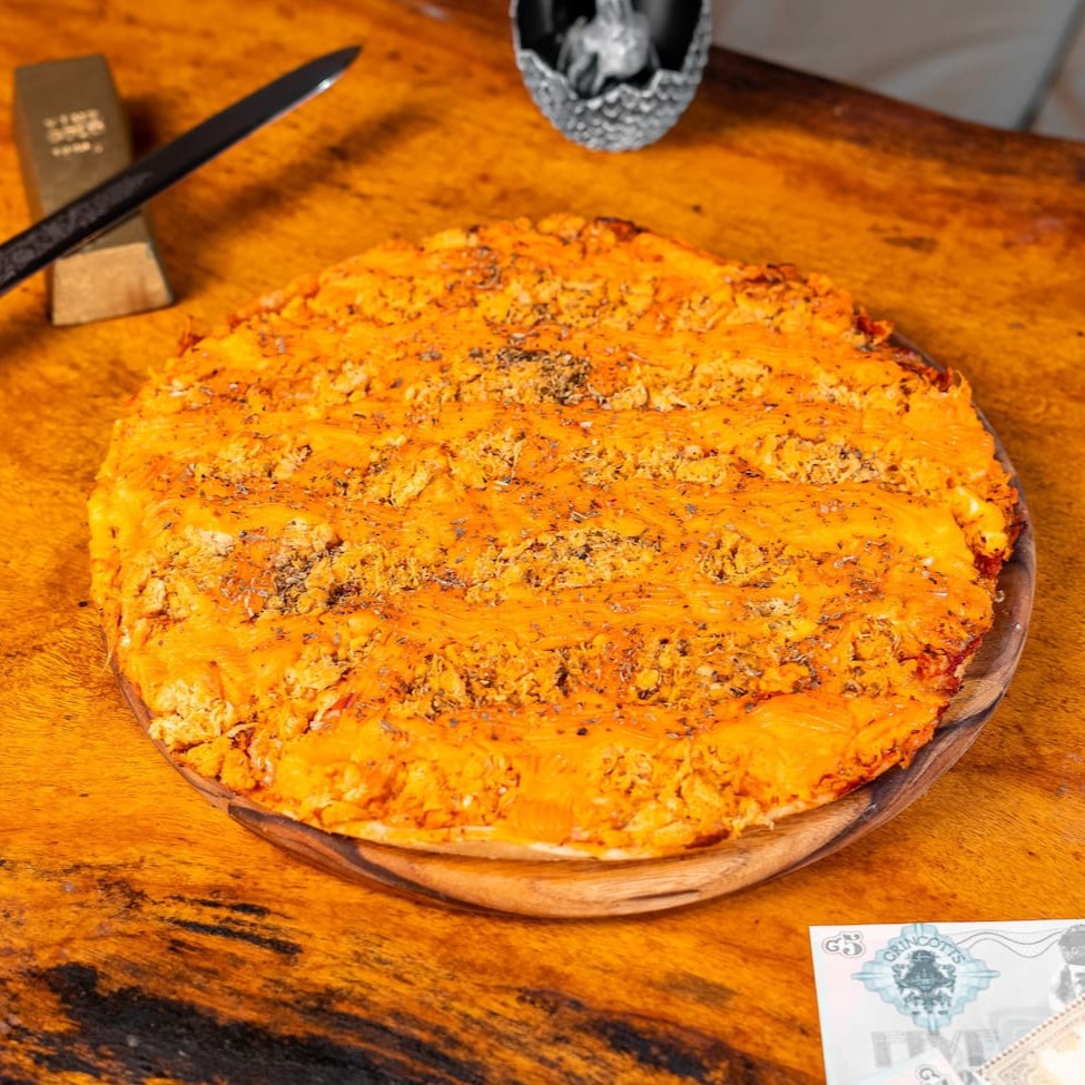 Massa artesanal fresca, molho de tomate caseiro, bastante queijo mussarela, uma porção generosa de frango, finalizada com cheddar Original e um leve toque de orégano. Atenção: Não trocamos, nem retiramos ingredientes.