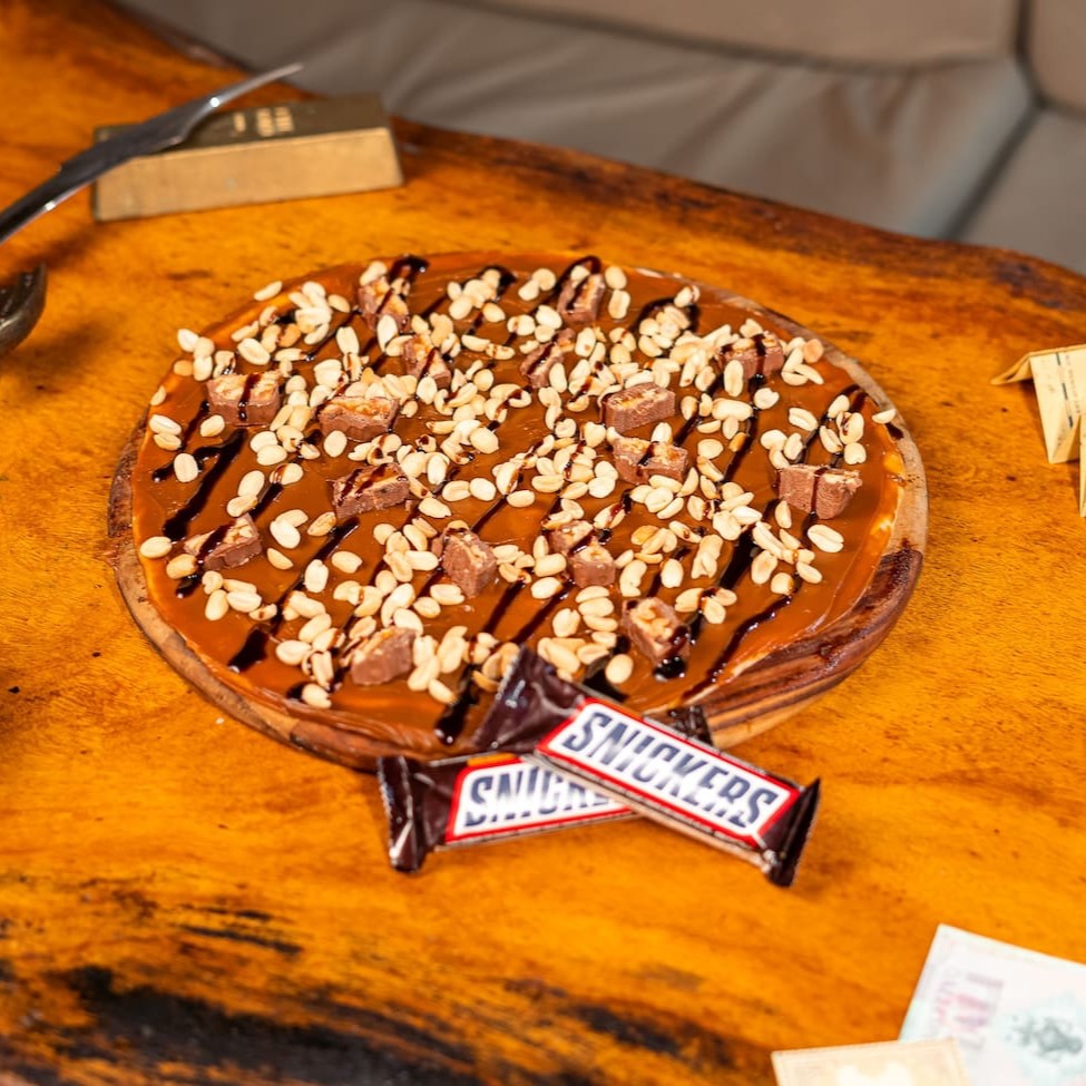 Massa artesanal fresca, base Nestlé no sabor doce de leite, pedaços de chocolate Snickers, finalizado com amendoim e calda de caramelo. Atenção: Não trocamos, nem retiramos ingredientes.