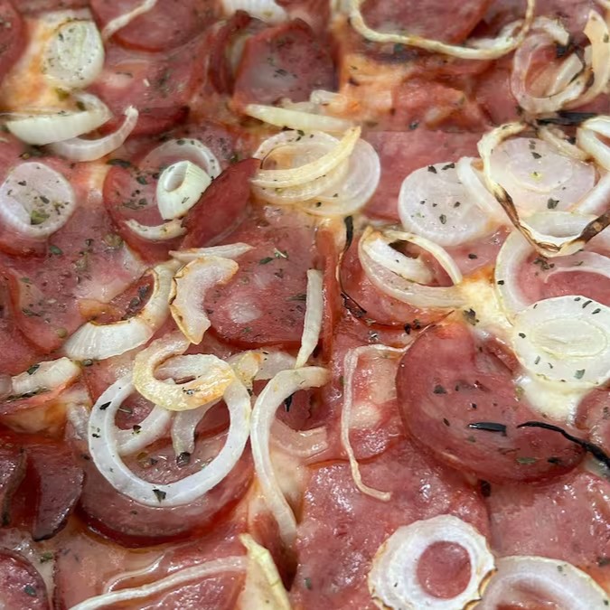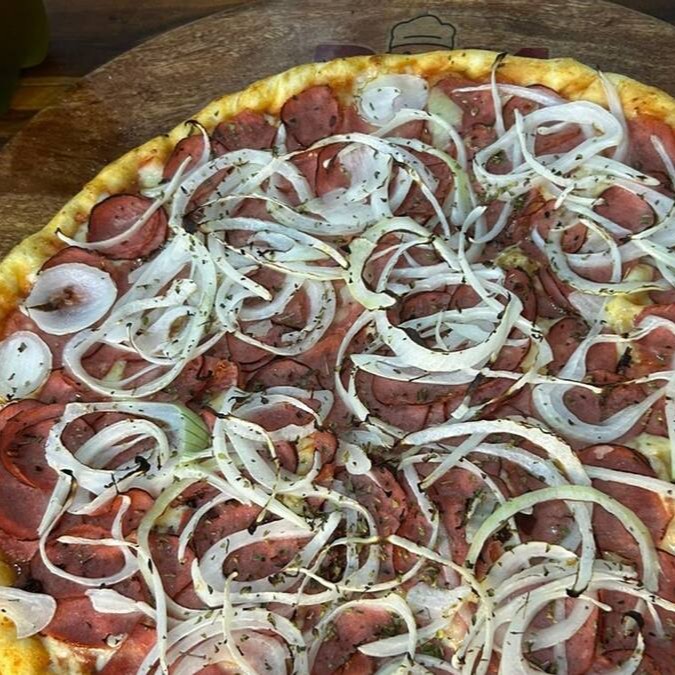 Massa tradicional, molho de tomate da casa, queijo mussarela, calabresa, cebola, azeitona e orégano.