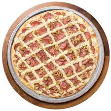 Massa tradicional, molho de tomate da casa, queijo mussarela, calabresa, cebola, requeijão, azeitona e orégano.