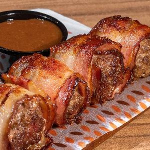 Carne moída ao tempero do chefe, envolvido no bacon na manteiga, tempero especial, acompanhado com salada, farofa e molho a sua escolha.