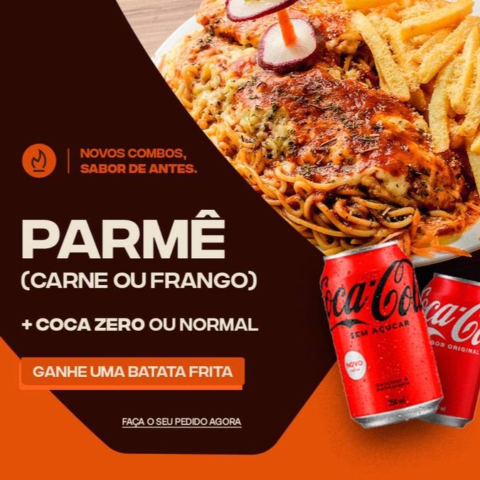 Parmê (escolha) + Batata Grátis + Coca Zero (escolha)