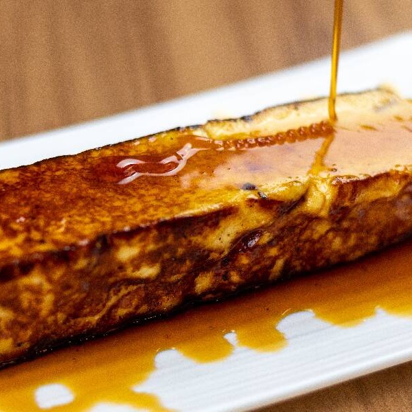 Queijo coalho derretido na manteiga, generoso e saboroso, acompanhado com Mel de Engenho.