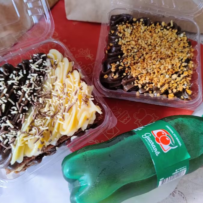 Combo Delicioso! Dois Bolos de Pote, com massa fofinha e úmida, regado com calda especial e recheio cremoso à sua escolha. Acompanha Refri gelado para completar esse combo delicioso.