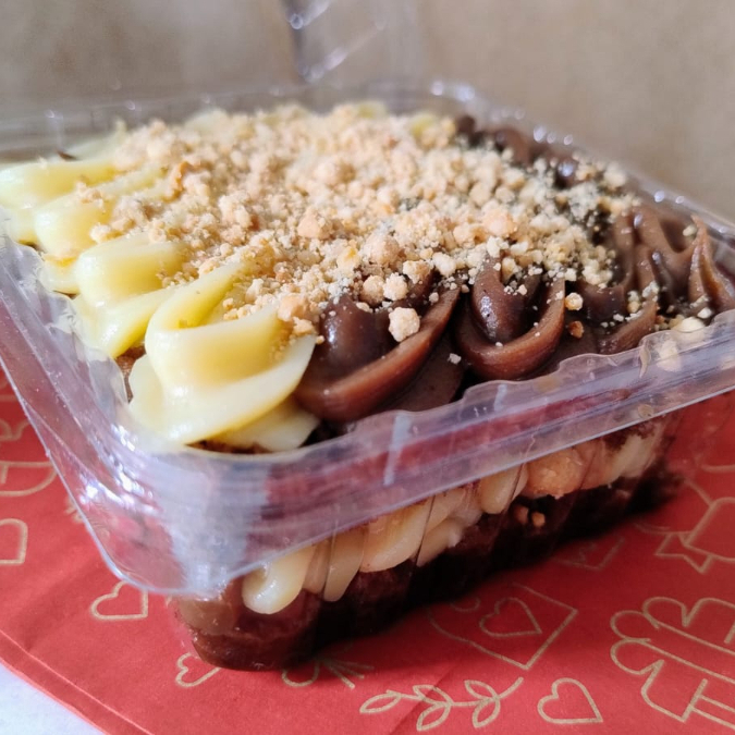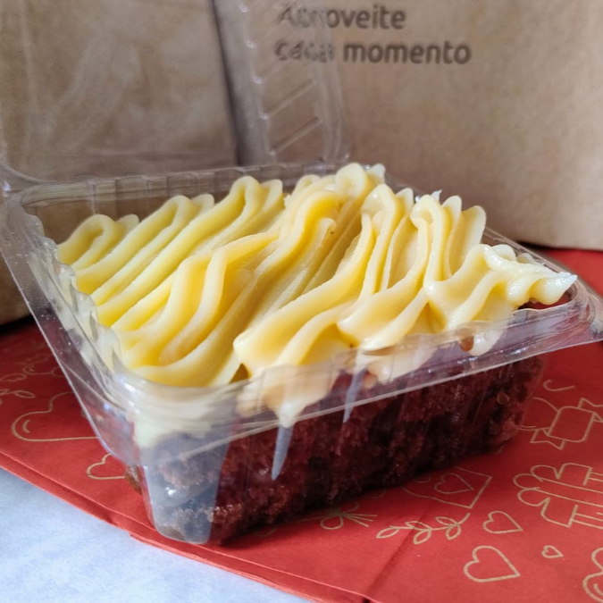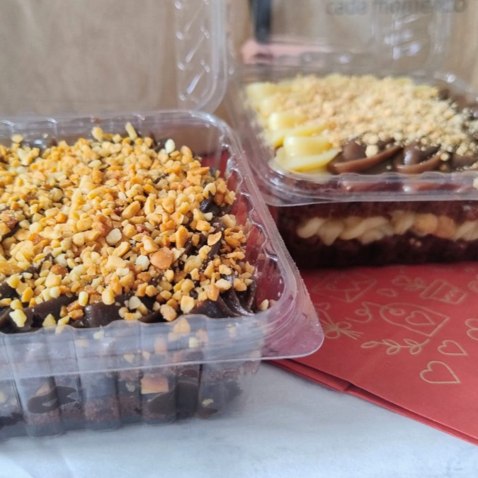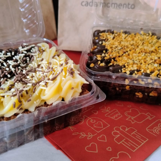 Massa de chocolate fofinha e molhadinha, regada com calda especial e coberta com creme de chocolate ao leite finalizado com paçoca. Um clássico que derrete na boca!
