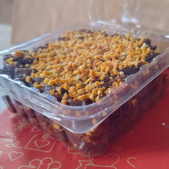 Bolo de chocolate macio e úmido, coberto com creme de chocolate ao leite e finalizado com amendoim crocante. Uma combinação que conquista no primeiro pedaço!