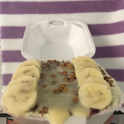 Açaí, Granola, Banana, Castanha e Leite Condensado.