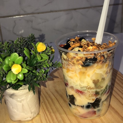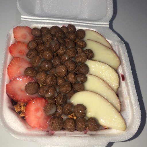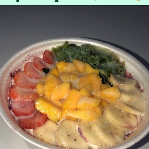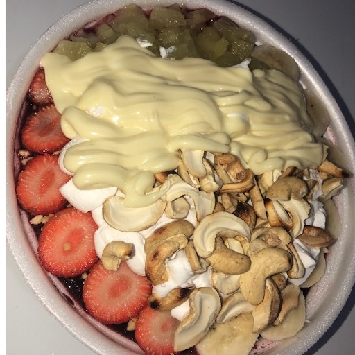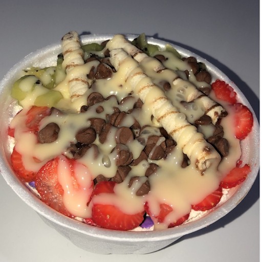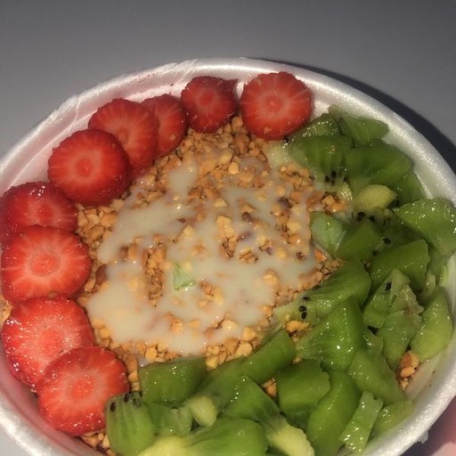 Açaí, Morango, Banana, Kiwi, Abacaxi, Sorvete e Cobertura da sua Preferencia. (Especificar sua cobertura na observação)