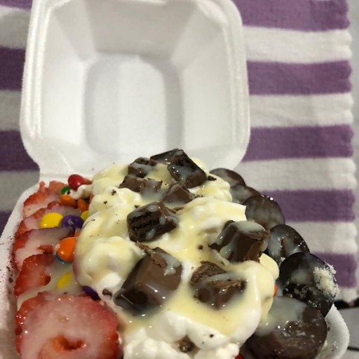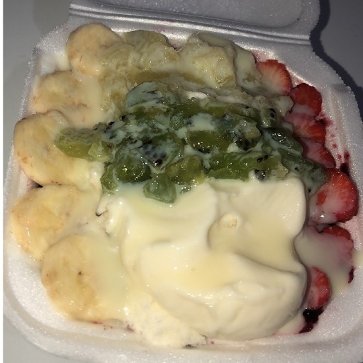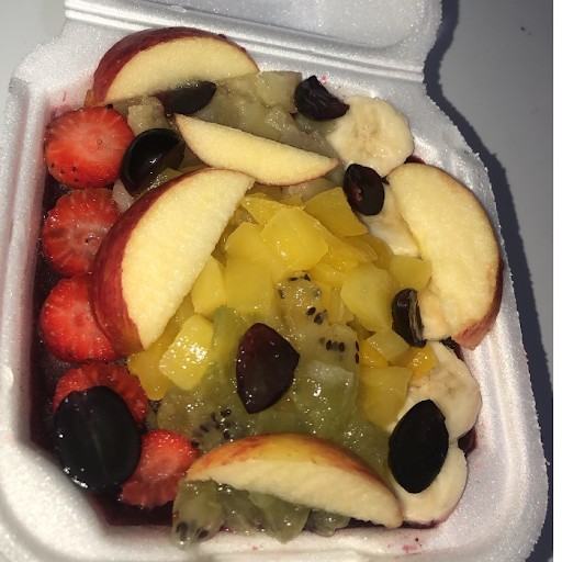Açaí,( todas as frutas) morango, banana, maça, kiwi, manga, uva e abacaxi.