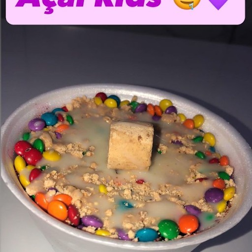 Açaí, Mms, paçoca e leite condensado.