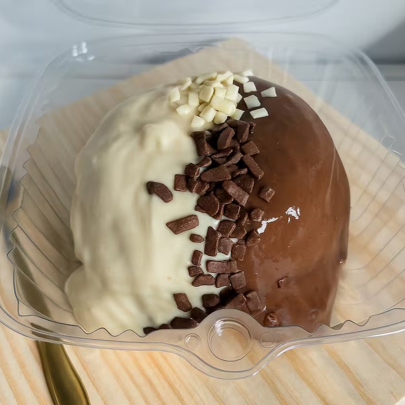 🥄Essa maravilha dos Deuses combina o sabor meio amargo do nosso creme trufado de chocolate 70% e o nosso creme trufado de ninho, acompanhados do nosso brownie chocolatudo.