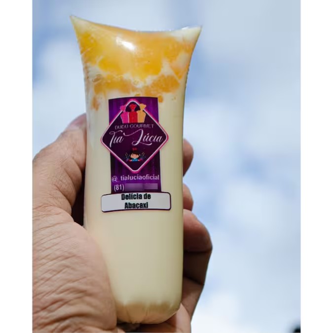 Produto à base de Leite, Calda e pedaços de Abacaxi.