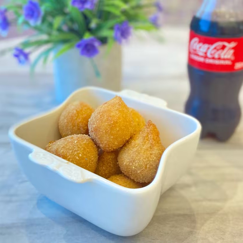 Porção de mini coxinhas com 10 unidades, massa de batata com recheio de frango.