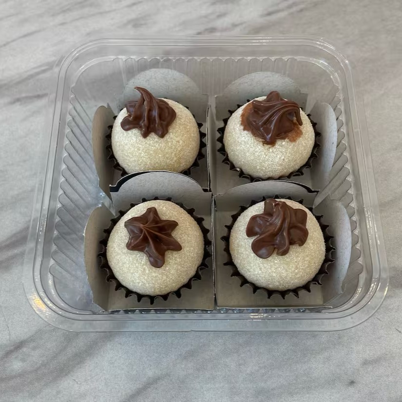 Caixinha com 4 unidades de um cremoso brigadeiro de Ninho, para finalização Nutella.