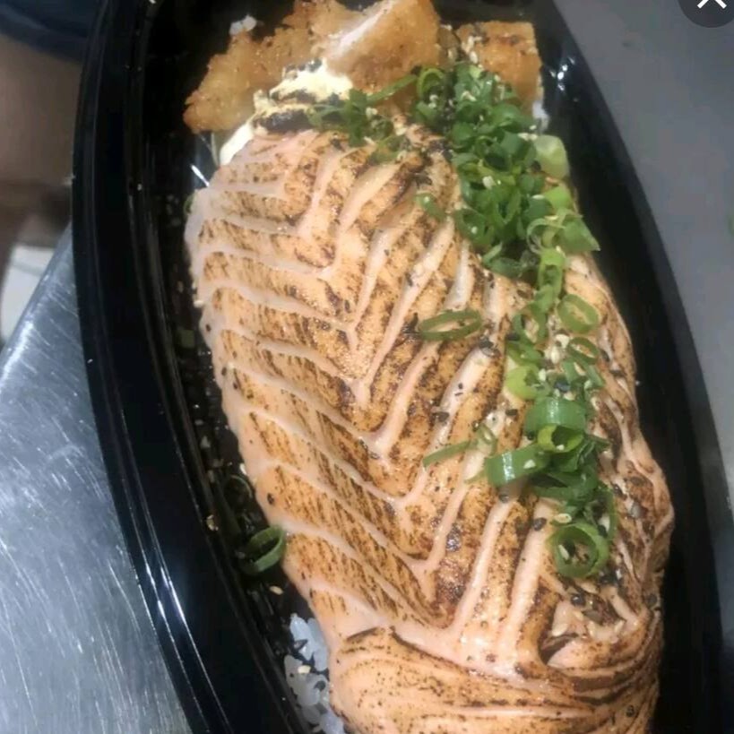 30 cariocas de salmão , arroz , creme chess e salmão fritos.