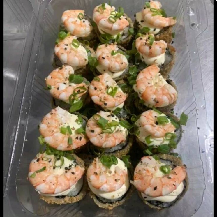 10 cariocas de salmão, 10 uramki de camarão, 10 Hot holl de kani+ 2 temakis de camarão crocante.