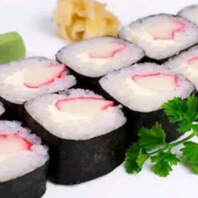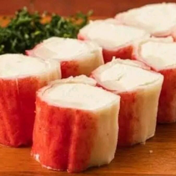 Dois temakis de kani, com cream cheese , um toque de Cebolinha.