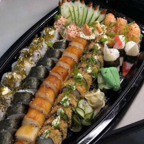 10 peças de uramaki, 10peças de hossomaki, 10cariocas de salmão , 10peças de hot holl , 4 nigiri de salmão , 4 de kani e 2 Jojo.