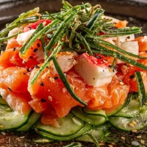 Pepino , kani, salmão , camarão , molho da casa ,e gengilin